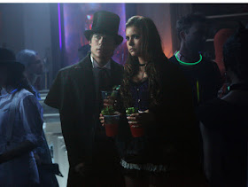 Matt keeps the truck anyway.  Rebekah tells April (Grace Phipps) she has dibs on Matt, not for long, ha.  Stefan compels April to forget the conversation he's about to have with Rebekah.  If she helps Stefan he can give her a clean slate and get Matt to do the same.  Elena compels the 'pretty girl' and then lets her go.  Damon tells her they're strangers to her, everyone is related to someone, she shouldn't care cos she doesn't know them.  Elena claims she's still the same person, but she's not really and how long can she maintain that stance.   Damon notices the Frat party flyer and wonders if they should go as killers or Vics.